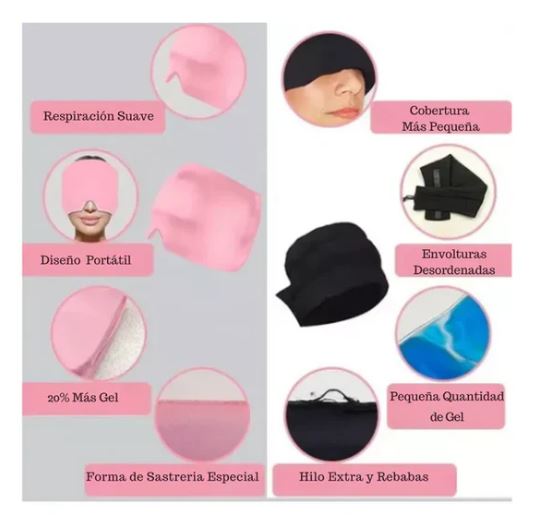 Terapia caliente: Además de una gorra fría para las migrañas, este gorro es apto para microondas, el efecto caliente dura 30 minutos. Solo caliéntalo durante 20 segundos en modo bajo y vuelve a ponerlo a trabajar. La envoltura del dolor de cabeza que reduce el dolor.
